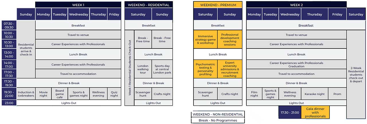 | 2-week Premium + Level 3 Work Experience Qualification with UCAS points | £4,400 | £7,550 |